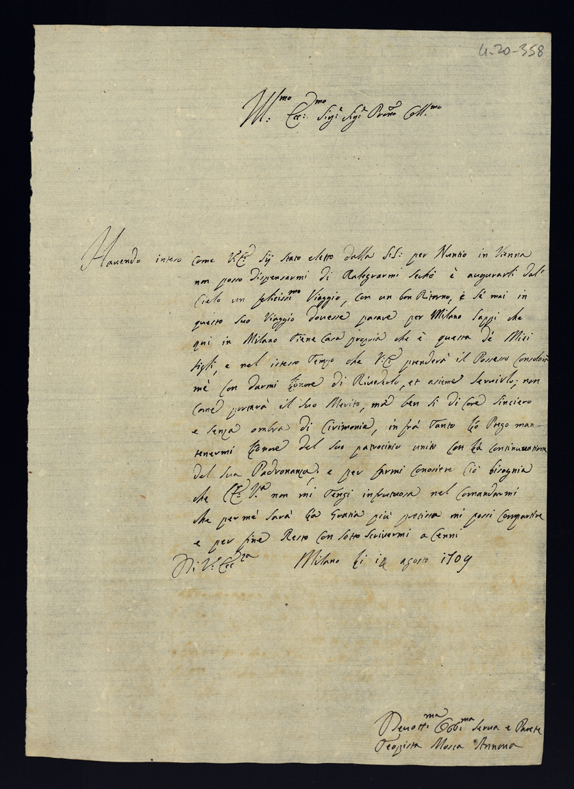 Lettere di congratulazioni per la deputazione di sua eccellenza in nunzio straordinario a Vienna