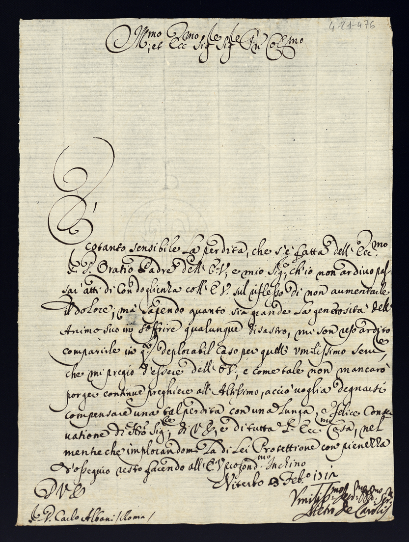 Lettere di condoglianza per la morte dell'eccellentissimo signor principe don Orazio Albani