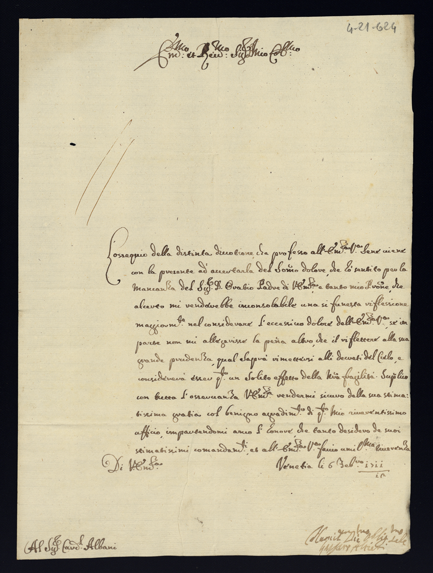 Lettere di condoglianza per la morte dell'eccellentissimo signor principe don Orazio Albani