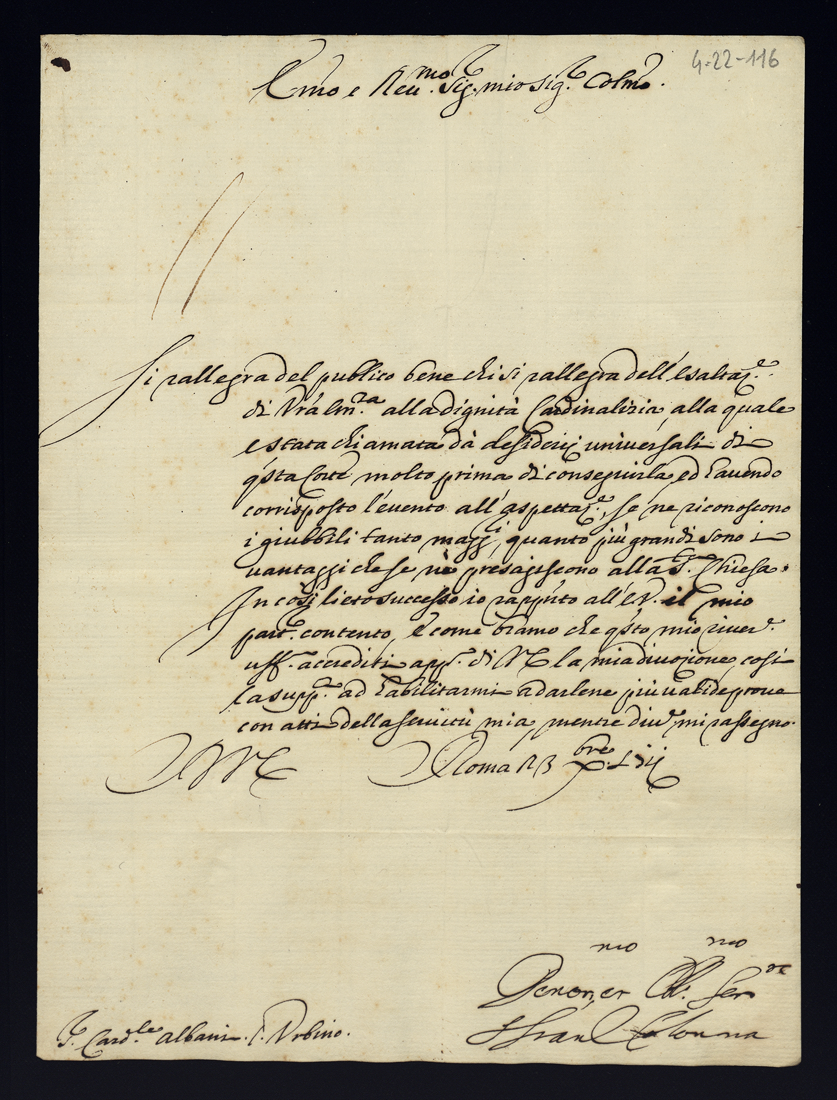 Lettere di congratulazioni per la promozione di Sua Eccellenza al Cardinalato