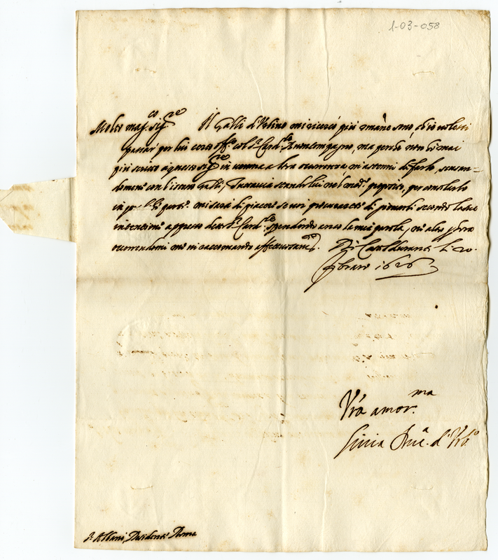 Livia Della Rovere chiede ad Orazio Albani di occuparsi del signor Galli di Urbino.