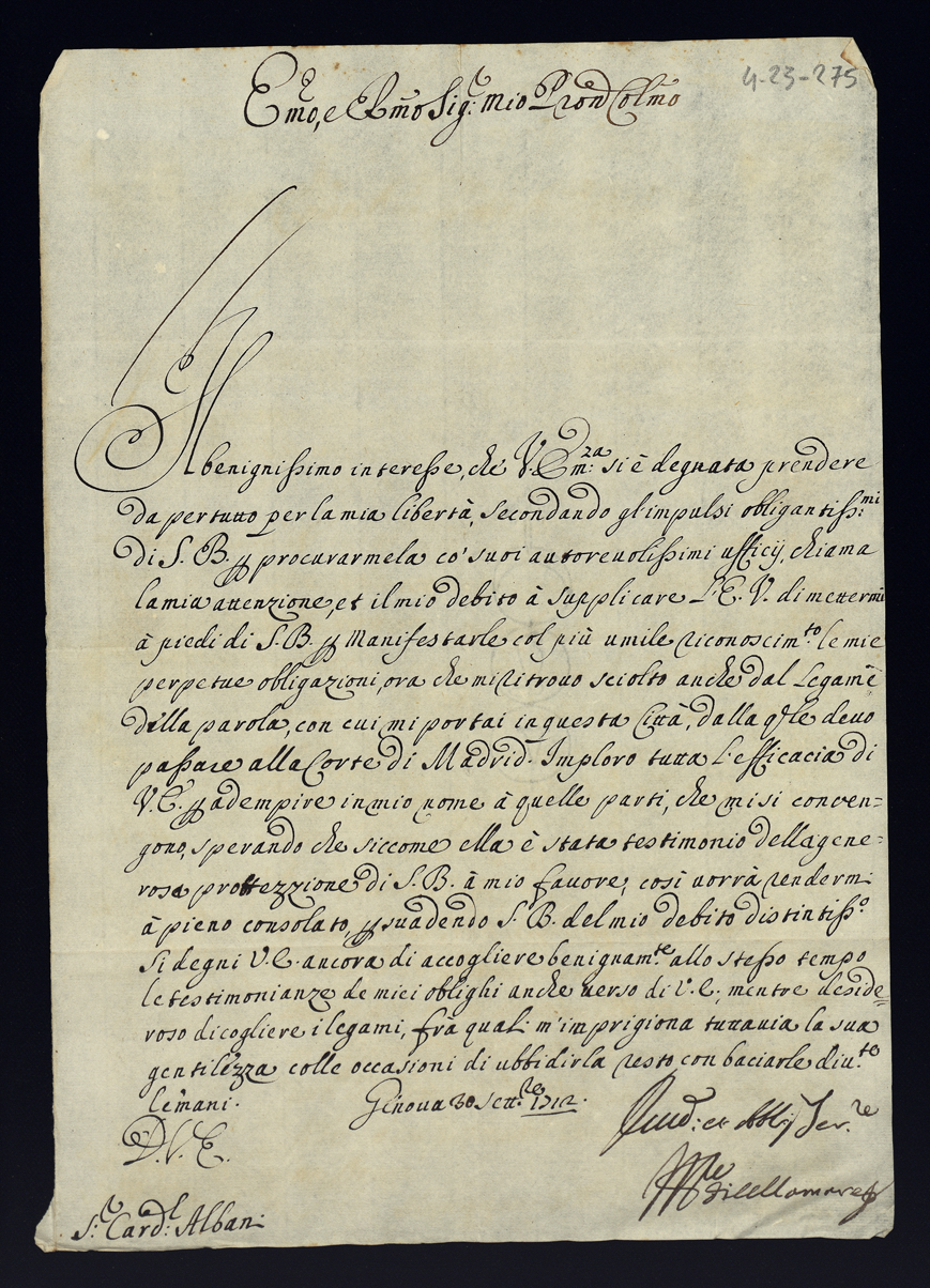 1712. Lettere di complimento e di negozio. Semestre secondo