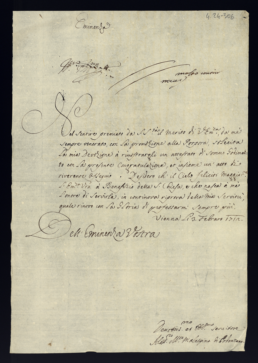 Lettere di congratulazioni per la promozione di sua eccellenza al cardinalato
