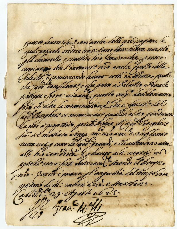 Lettera di Francesco Maria duca di Urbino ad Orazio Albani (1625 agosto 29)