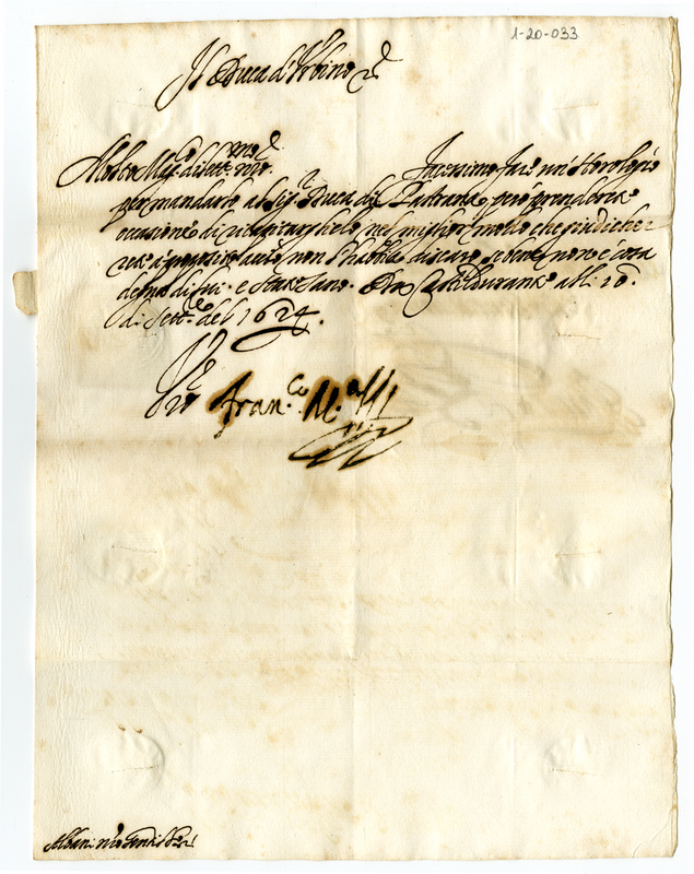 Lettera di Francesco Maria duca di Urbino a Orazio Albani (1624 settembre 10)