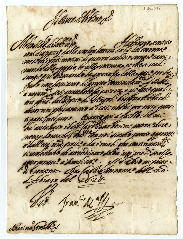 Lettera di Francesco Maria duca di Urbino a Orazio Albani (1625 febbraio 20)