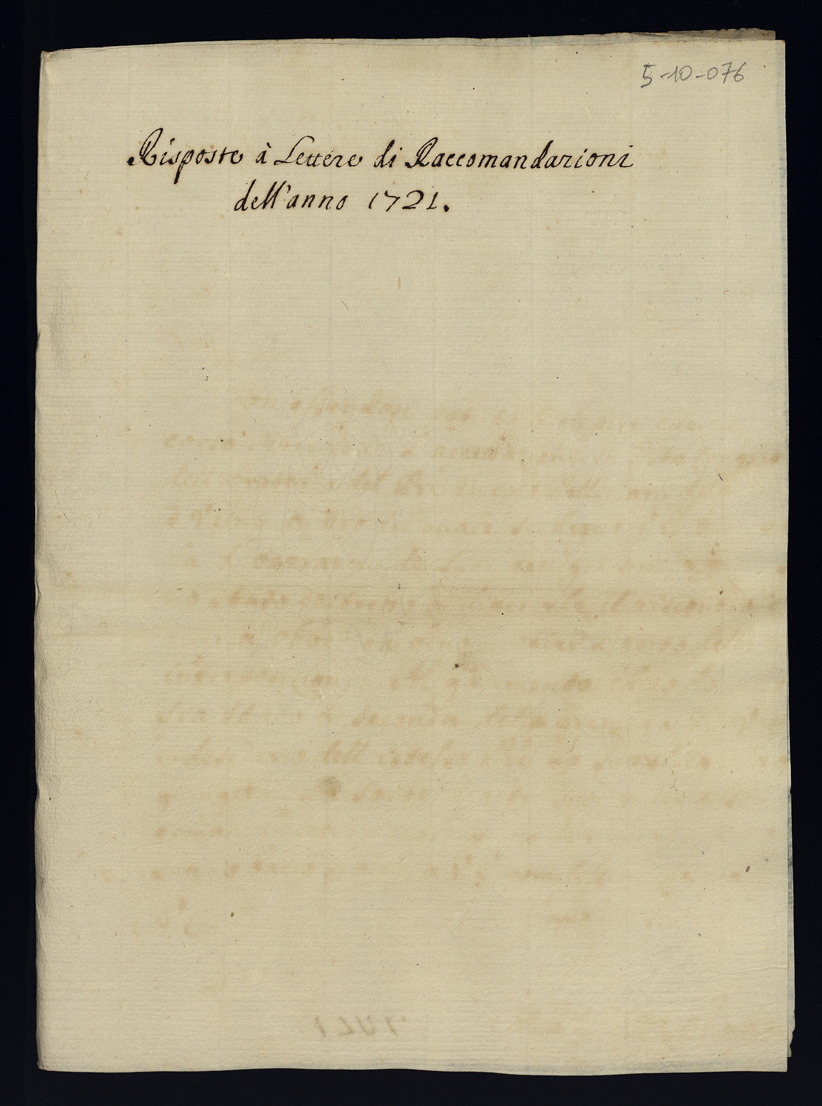 Risposte a lettere di raccomandazioni dell'anno 1721