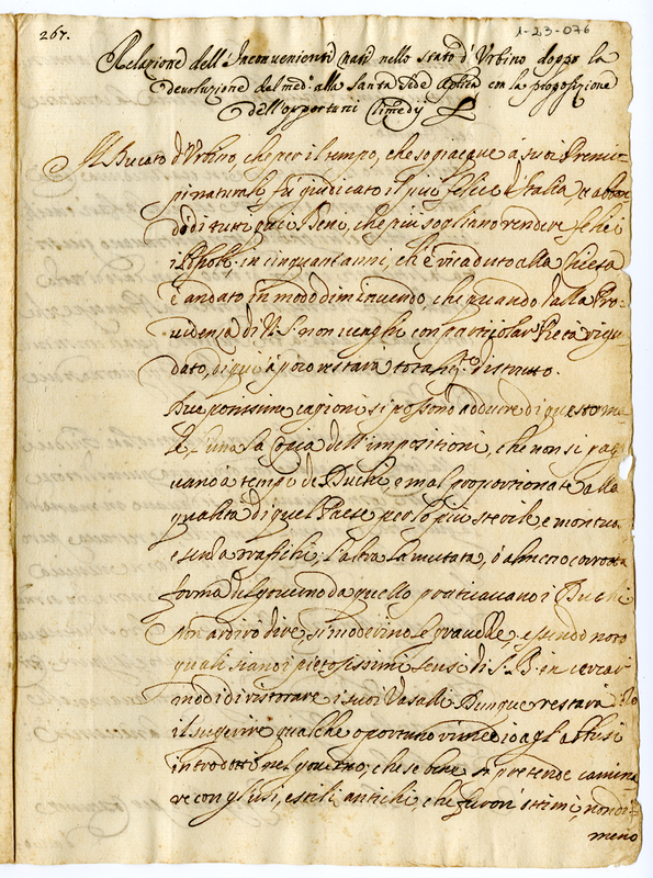 Relazione dell'Inconvenienti nati nello Stato d'Urbino doppo la devoluzione del medesimo alla Santa Sede Apostolica con la popolazione dell'opportuni rimedi (1681 ca.)