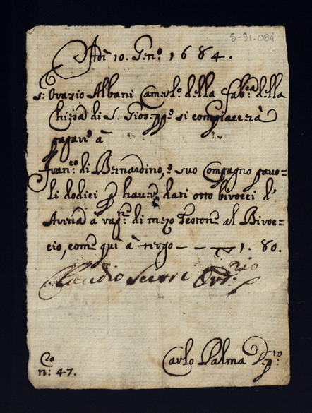 Bollette della Venerabile Compagnia di S. Giuseppe per la Fabrica