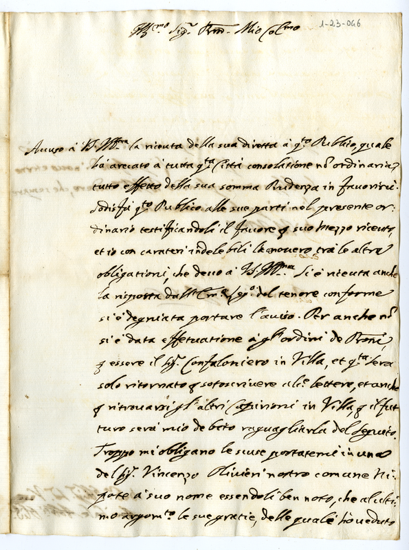 Lettera di Annibale degli Abbati Olivieri a Carlo Albani (1676 agosto 27)