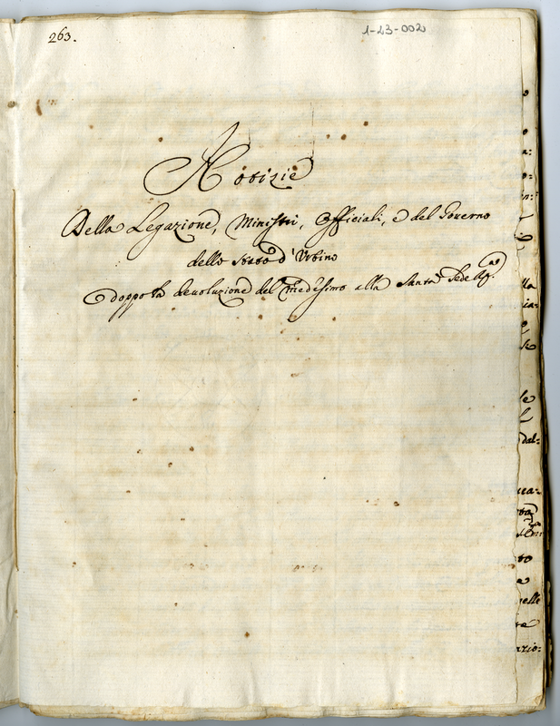 Notizie della Legazione, Ministri, Officiali, e del Governo dello Stato d'Urbino doppo la devoluzione del medesimo alla Santa Sede Apostolica (1631)