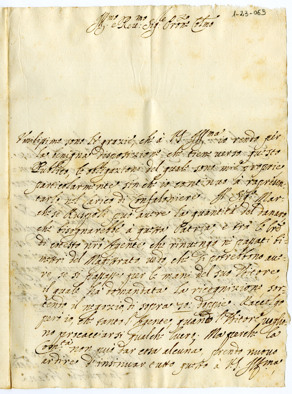 Chiede la diretta mediazione di monsignor Albani nei confronti del marchese Ruspoli per avere la quantità di denaro necessaria ad Urbino
