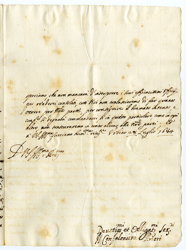 Lettera del gonfaloniere e priori a Giovanni Francesco Albani (1684 luglio 28)