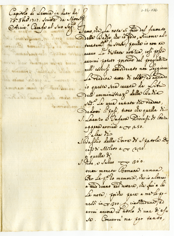 Capitolo di lettera in data del 16 ottobre 1717 scritta da Monsignor Arcivescovo Carafa al suo Segretario