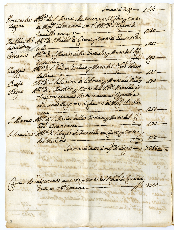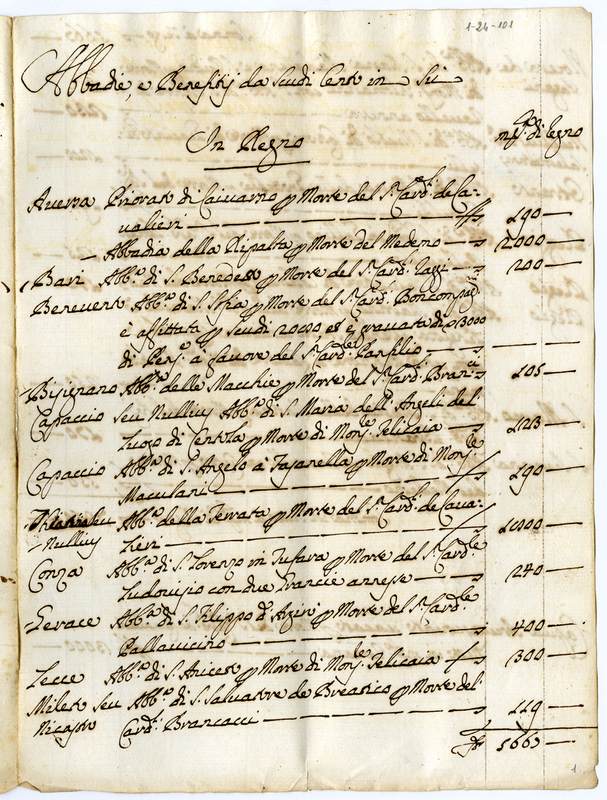 Abbadie e pensioni diverse da conferirsi che si trovano in Dataria a tutto agosto 1690 da scudi 100 in su