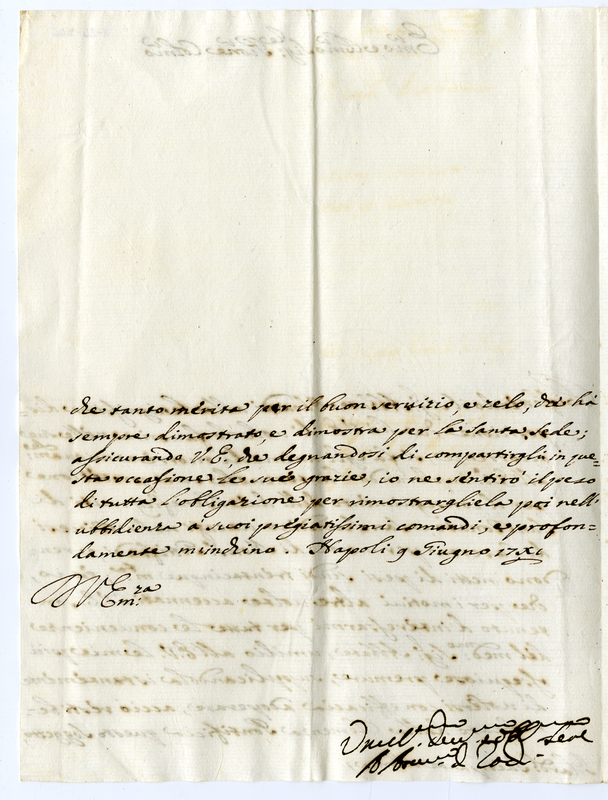 Lettera dell'arcivescovo di Rodi ad un cardinale (1711 giugno 9)