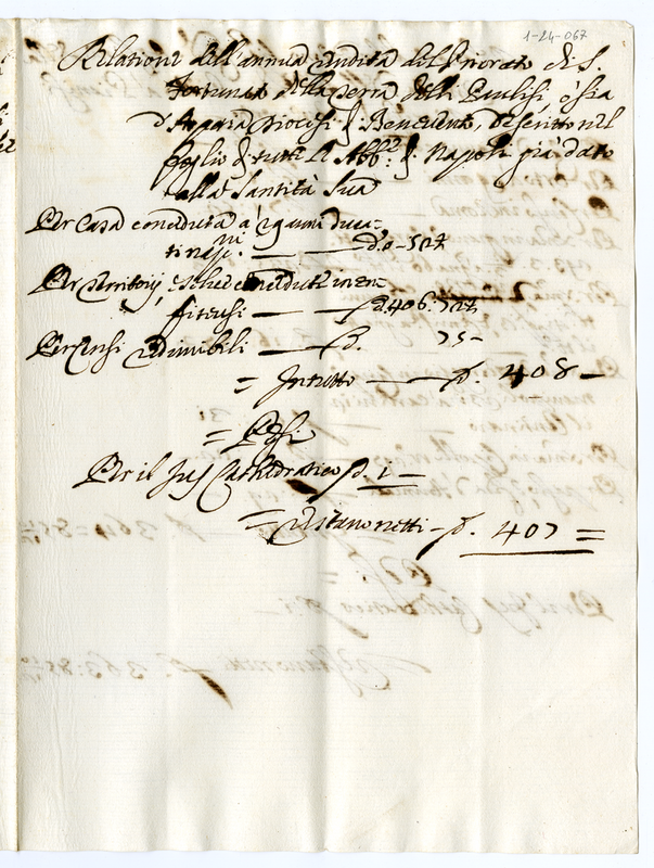 Relazione del medesimo Signor Cardinale Orsini della rendita dell'Abbazia di San Pietro a Pienisi (1700-1721)