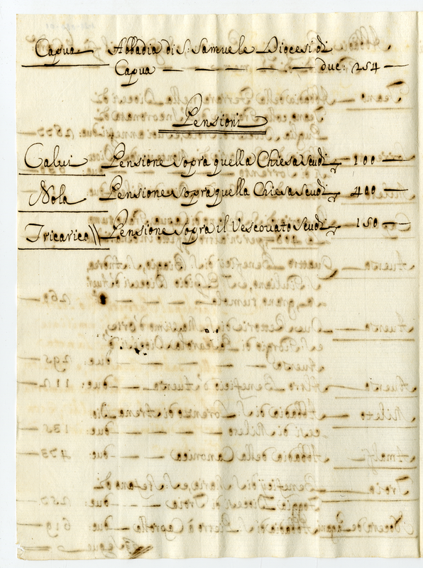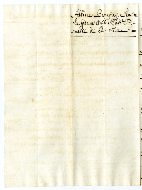 Benefici e pensione che godeva il cardinale Grimaldi nel Regno di Napoli