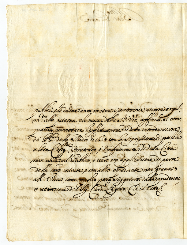 La città di Urbino chiede al Santo Padre che intervenga affinchè vengano introdotti in detta città i Padri della Congregazione della Madre di Dio al posto di una Congregazione meno utile alla Comunità