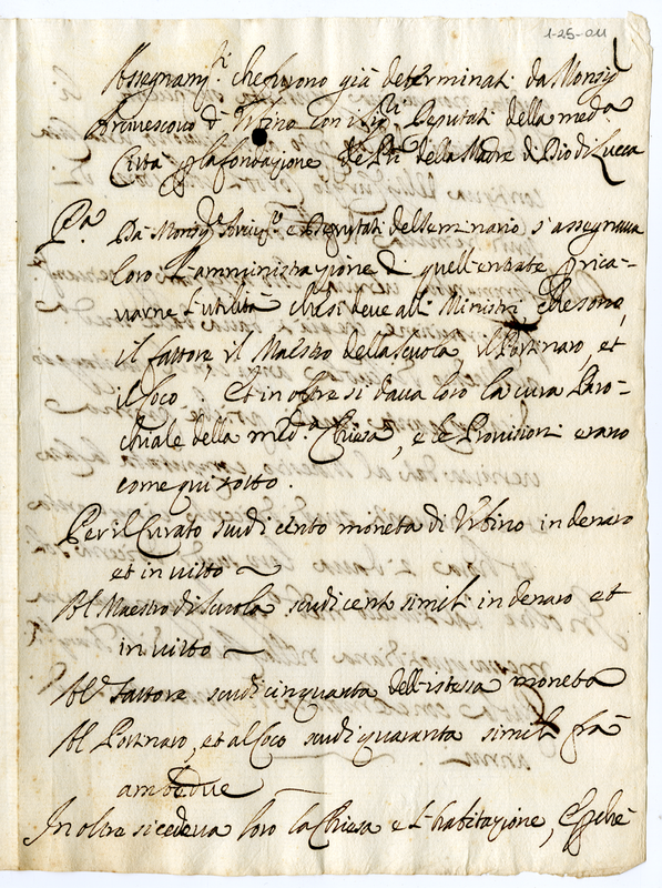 Assegnazioni che furono già determinati da Monsignor Arcivescovo d'Urbino con i Signori Deputati della medesima Città per la fondazione de Padri della Madre di Dio di Lucca (1700-1721)