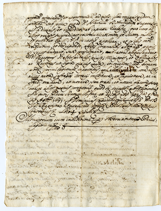 Monitorium cum in acca inibitione per observationem privilegiorum (1671 aprile 9)