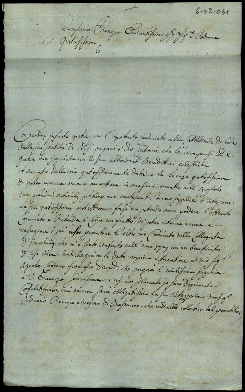 Lettere di complimento e di negozio. 1723. Semestre primo