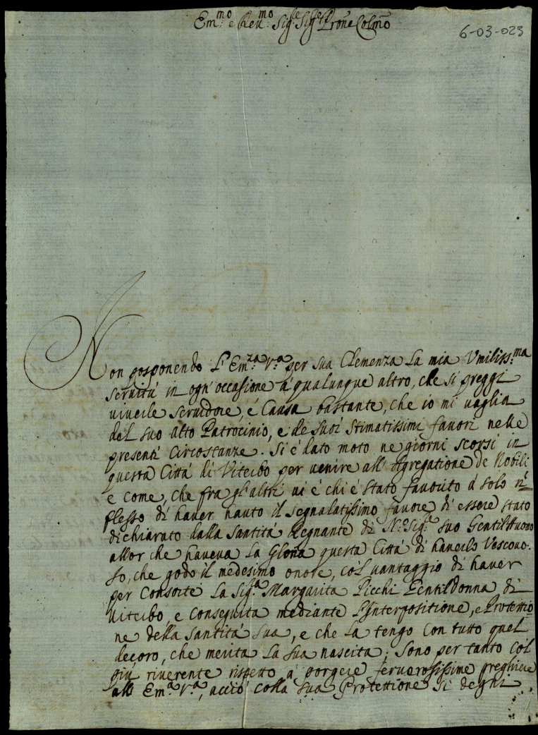 Lettere di complimento e di negozio. 1723. Semestre secondo