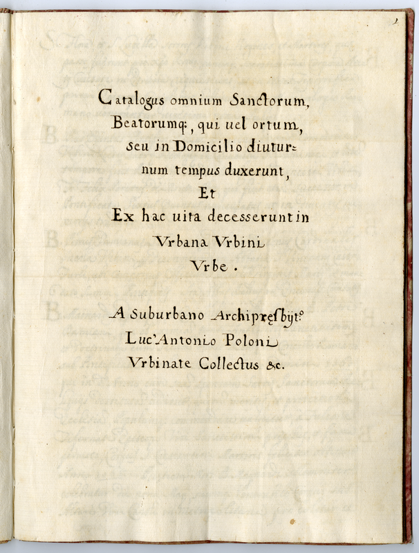 Catalogus omnium Sanctorum, Beatorunque , qui vel ortum, seu in Domicilio diuturnum tempus duxerunt, Et Ex hac vita decesserunt in Urbana Urbini Urbe (1700-1721)