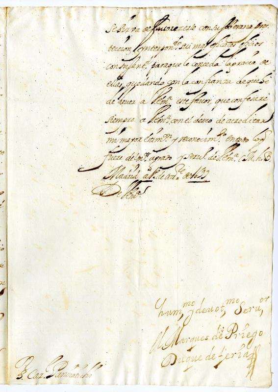 Lettera del Marchese de Pirego Duca di Ferias al Cardinale Panciatici (1699 ottobre 1)