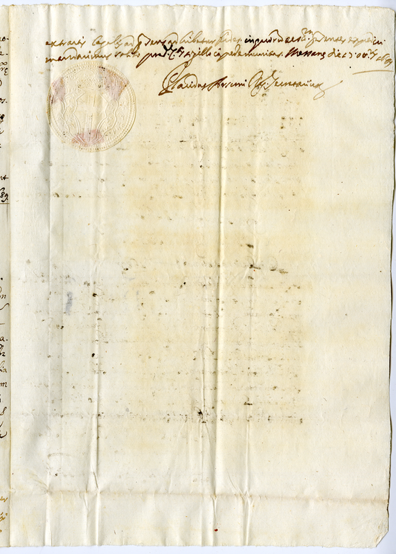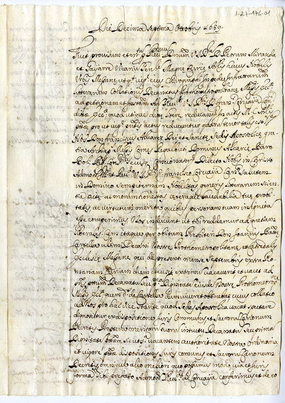 Attestato di conferimento al sacerdote Cornaya Francesco del decanato della chiesa Protometropolitana e cattedrale di Messina (1689 ottobre 17)