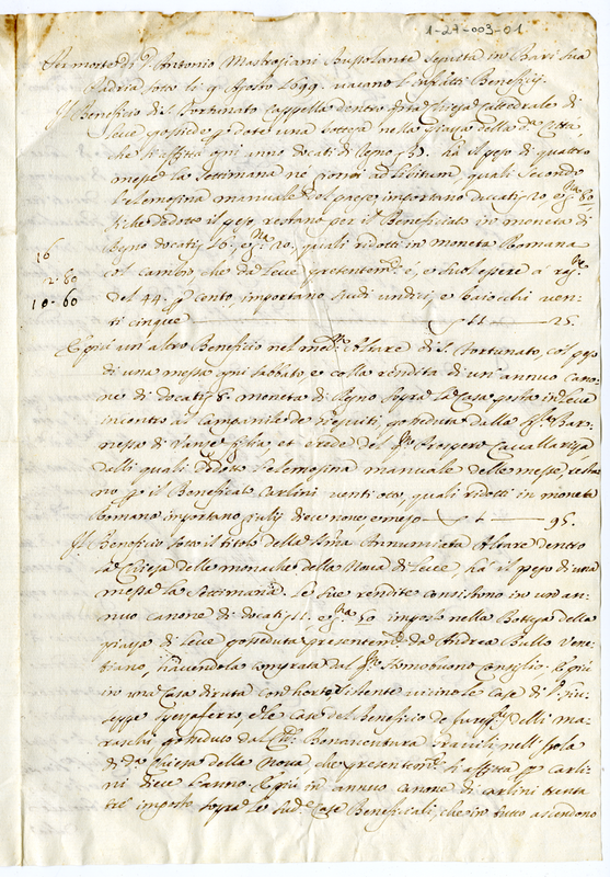 Benefici goduti dal defunto Don Antonio Mastrosiani (1699)