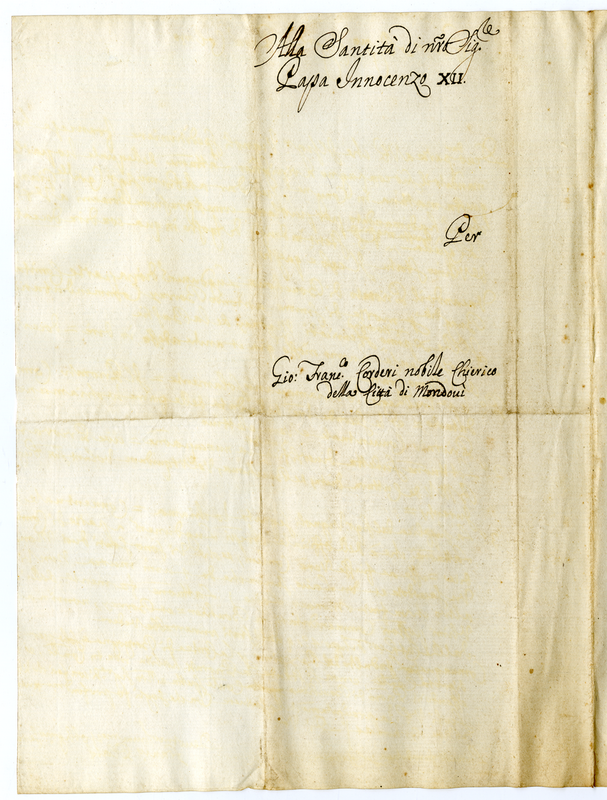 Lettera di Giovanni Francesco Corderi a Papa Innocenzo XII (1691-1700)