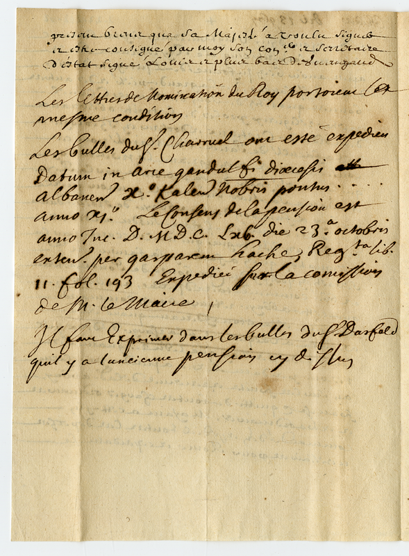 4. A proposito della lettera di Luigi XIV sulla nomina di Guglielmo Chevrel (1665 novembre 13)