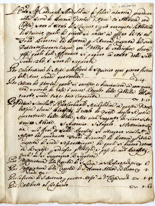 Sui benefici goduti dal defunto Cardinale Maidalchini (1700)