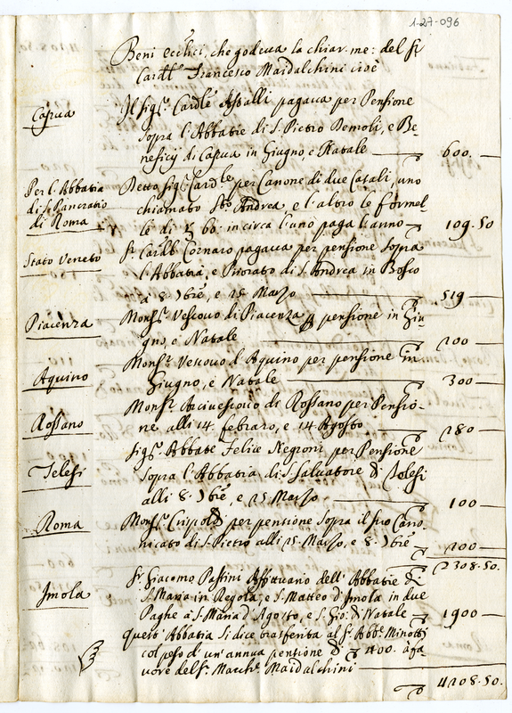 Beni ecclesiastici che godeva la chiara memoria del fu Cardinale Francesco Maidalchini (1700 giugno 13)