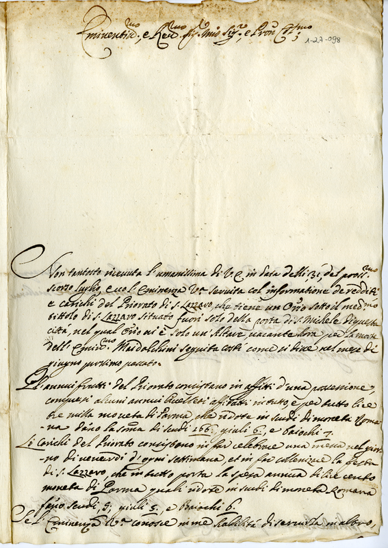 Sul Priorato di San Lazzaro vacante per morte del Cardinale Maidalchini
