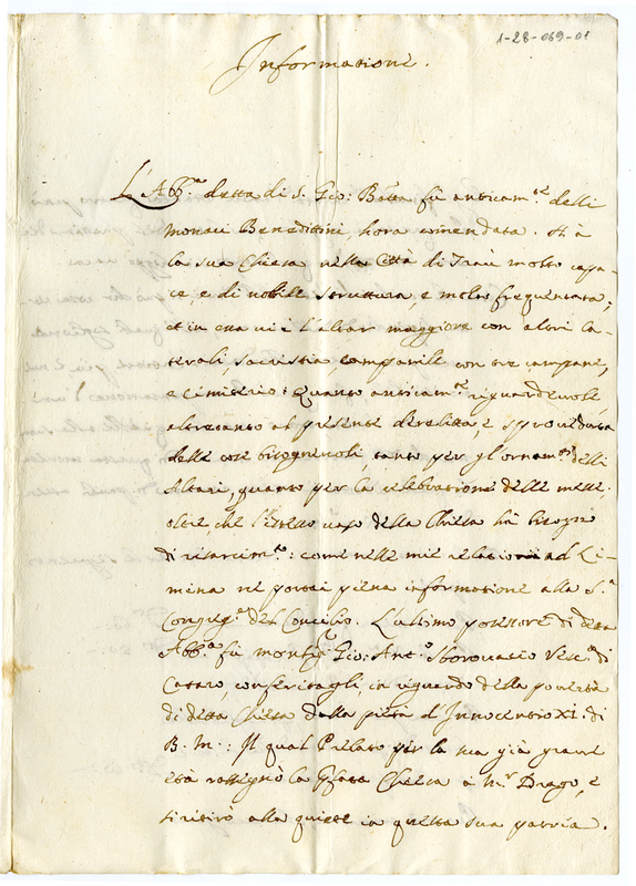 Informazioni storiche sull'Abbazia di San Giovanni Battista di Traù e sue rendite (1694)