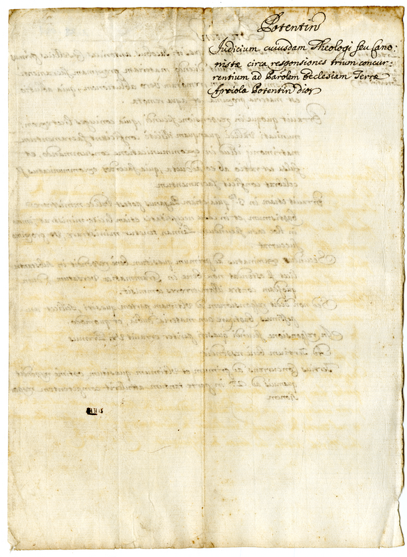 Giudizio di alcuni teologi canonisti sul concorso di tre candicati per una chiesa parrocchiale di Potenza (1689-1700)