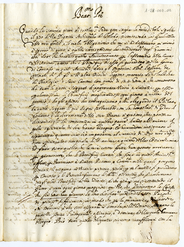 Lettera del Cardinale Aragon a papa Innocenzo XII (1666-1677)