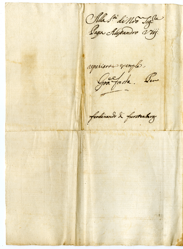 Lettera di Ferdinando di Furstenberg a Papa Alessandro VIII (1689-1691)