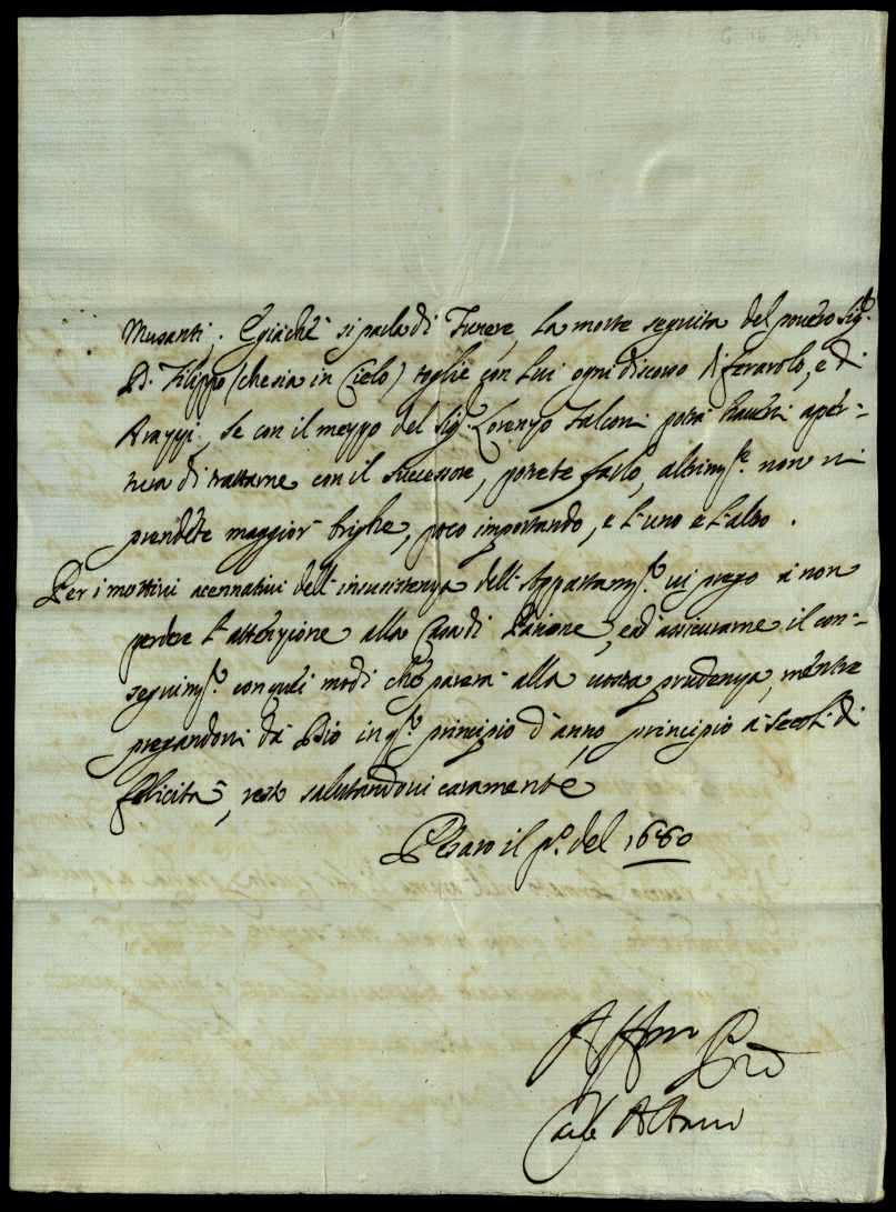 4. Lettere del signor Carlo Albani del 1678 e 1679 scritte a monsignor Albani suo figlio