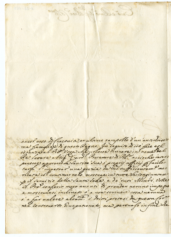 Lettera dell'Arcivescovo e Vescovo di Rimini a un Cardinale (1699 maggio 19)