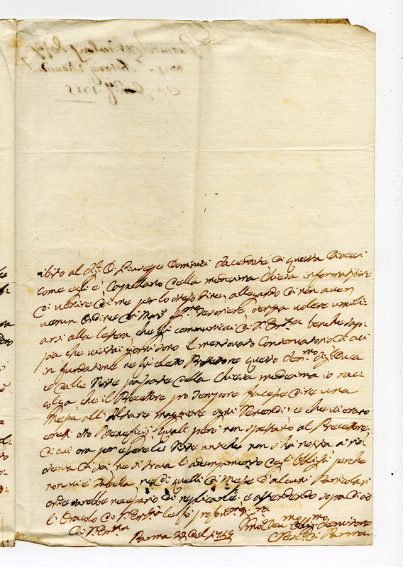 Lettera del vescovo di Parma ad un cardinale (1715 gennaio 22)