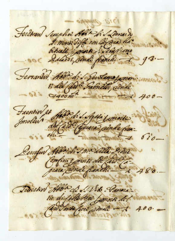 Rendite di alcune abazie dello Stato della Chiesa