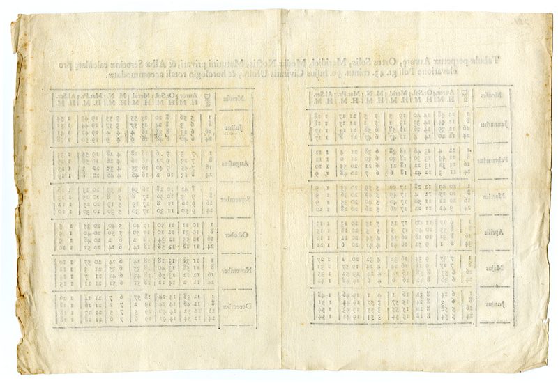 Tavola stampata delle ore dell'aurora, mattino, pomeriggio, mezzanotte per la città e Diocesi di Urbino (1700-1721)