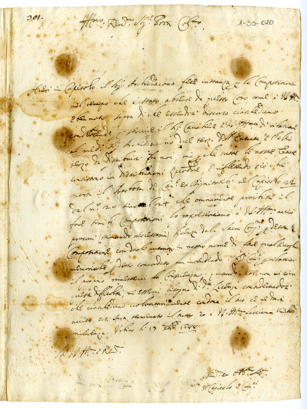 Lettera del Capitolo e Canonici di Urbino a Illustrissimo e Reverendissimo Signore (1688 dicembre 17)