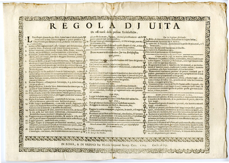Regola di vita da effettuarsi dalle persone ecclesiastiche (1703)