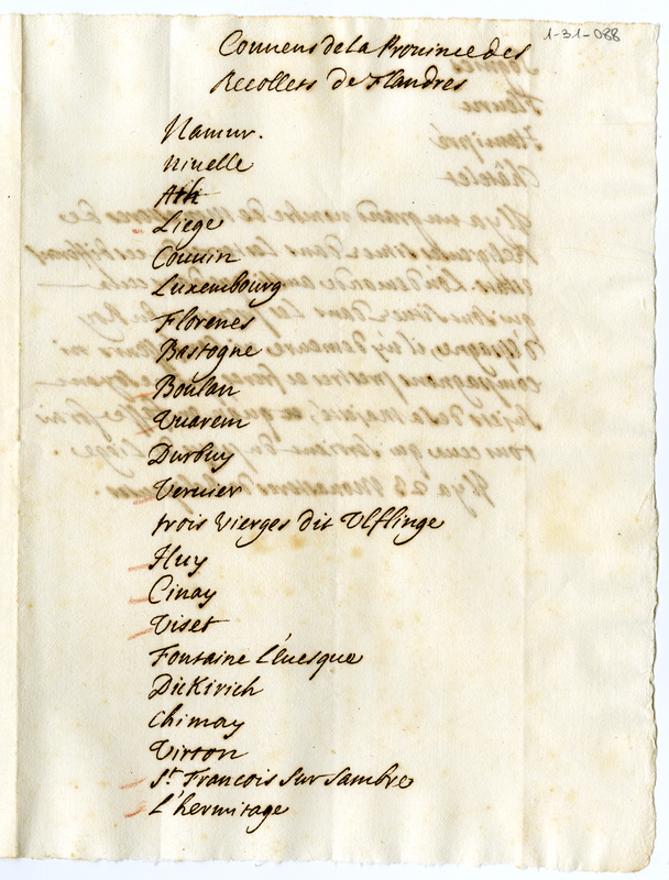Convens de la province des Recollets de Flandres (1700-1721)