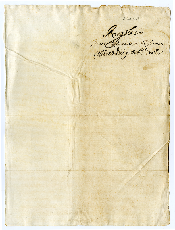 Regolari Minori Osservanti, e Riformati Collecta die 9 octobris 1708