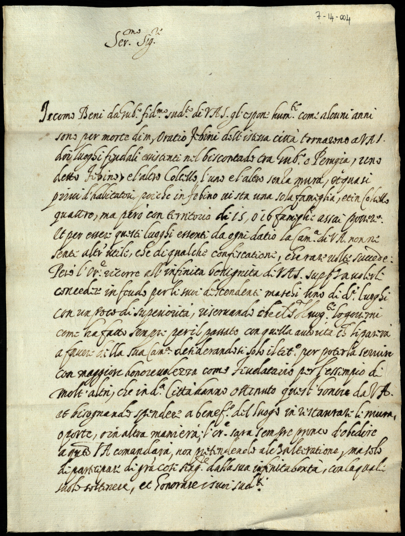 Lettere, memoriali al Serenissimo Principe d'Urbino appartenenti alla carica di segretario di Giustizia